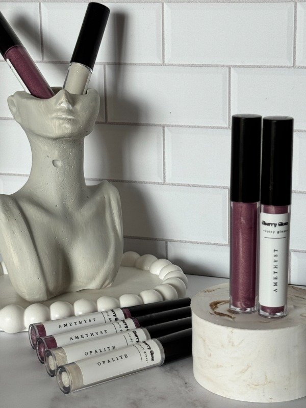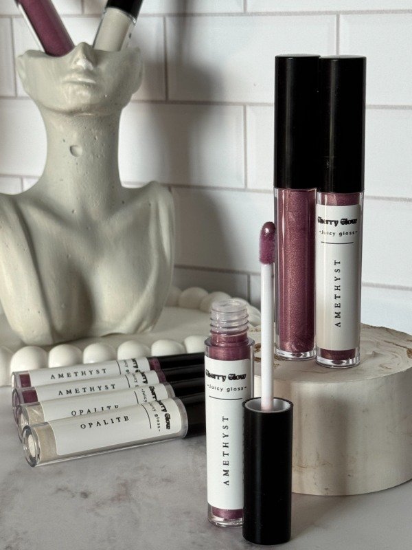 Gloss con color rosado violáceo, ideal para lograr un acabado luminoso y natural.