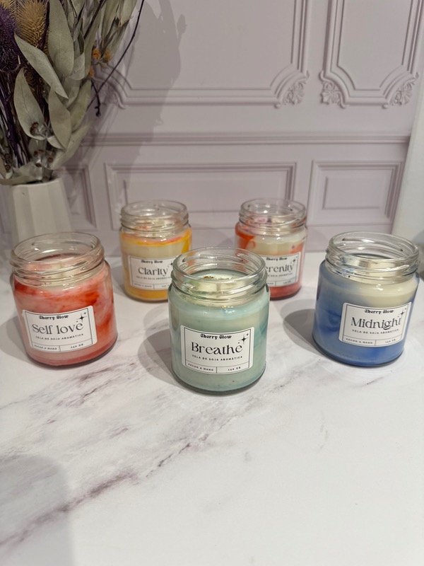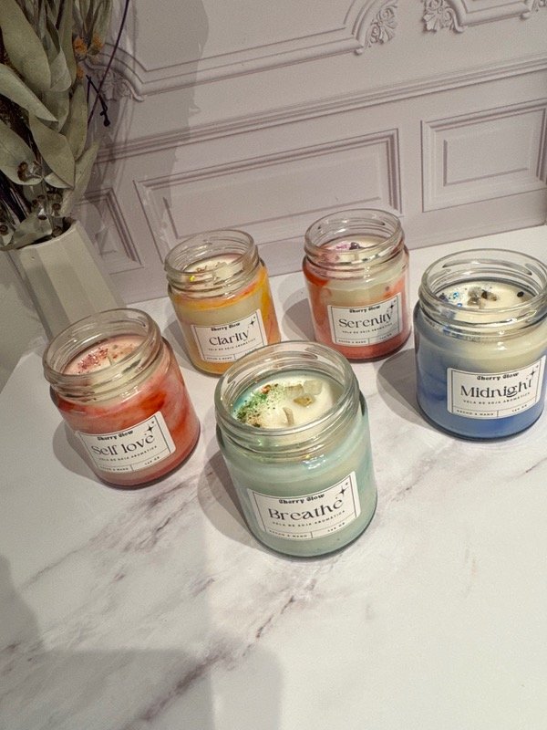 Hecha a mano con cera de soja 100% natural, sin parafina, con escallas de piedras energéticas y blends de aromaterapia diseñados para acompañarte en distintos momentos del día.
